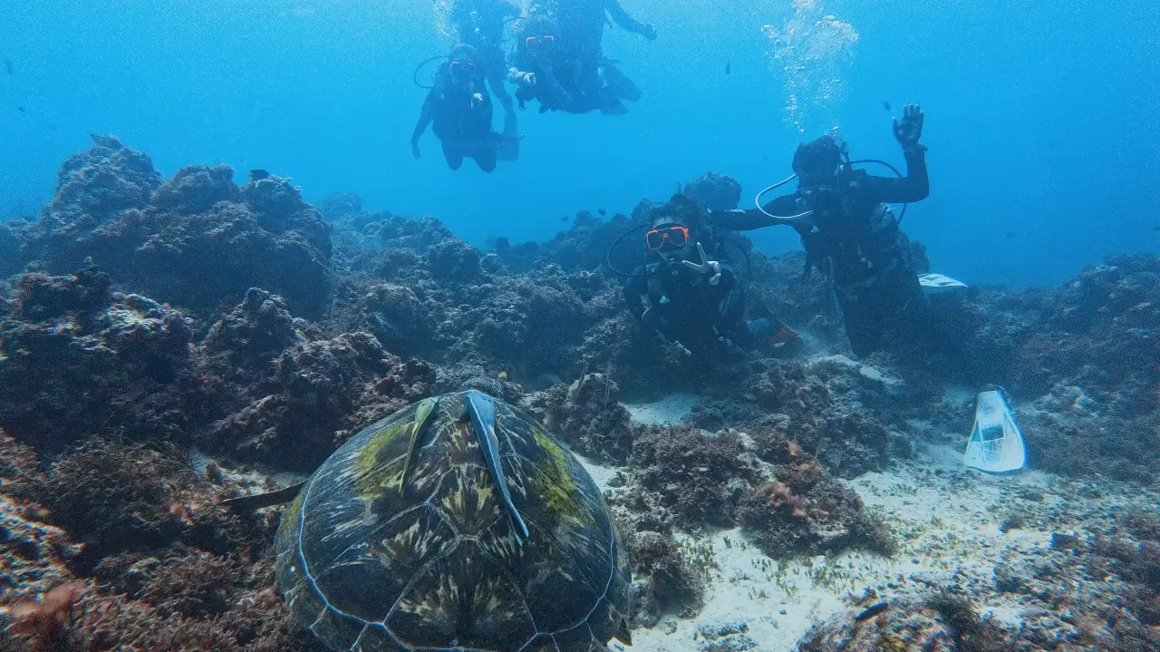 Of course, sea turtles don’t show up every single time. Sometimes, the sound of bubbles from scuba gear can scare them away. Our instructors always approach with extreme care so we can observe them peacefully without disturbing them.